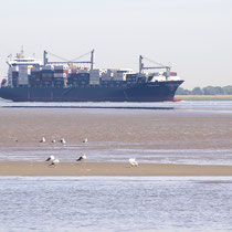 .... eine Fahrt mit der Elbfähre nach Glückstadt. Das ist wie einen kleine Seefahrt, in 20 Minuten über die breite Elbe zwischen Wischhafen und Glückstadt. Bei Ebbe kann man auf den Sandbänken in der Elbe die Seehunde sehen. Den großen Potten, meinst Containerriesen, die von oder nach Hamburg fahren, muss die Fähre ausweichen. Eine Überfahrt mit PKW und zwei Personen kostet ca. 10 €. Im Sommer gibt es leicht 2, 3 Stunden Wartezeit vor der Fähre.